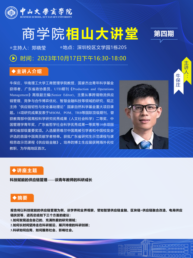 相山大讲堂第四期丨牛保庄:科技赋能的供应链管理——谈青年教师的科研成长