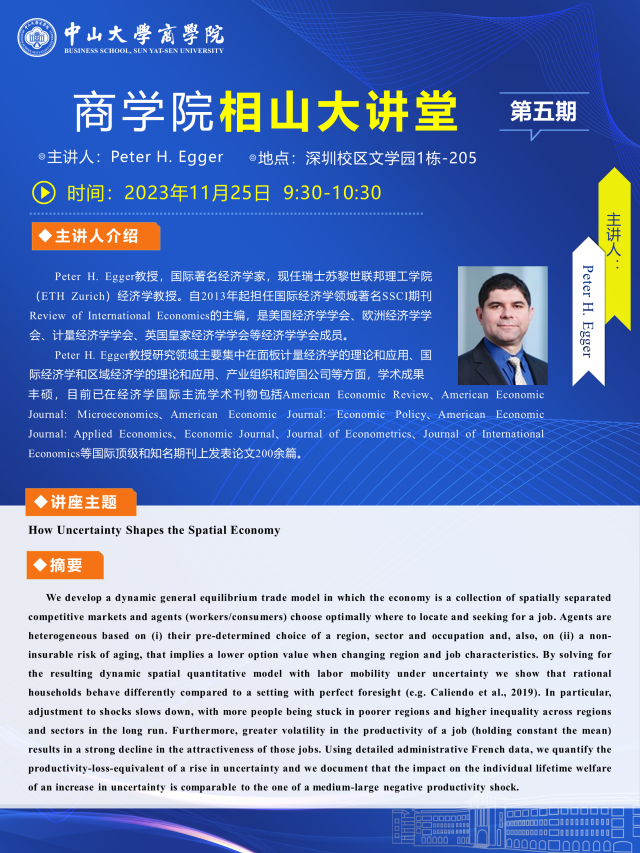 相山大讲堂第五期 | Peter H. Egger:How Uncertainty Shapes the Spatial Economy