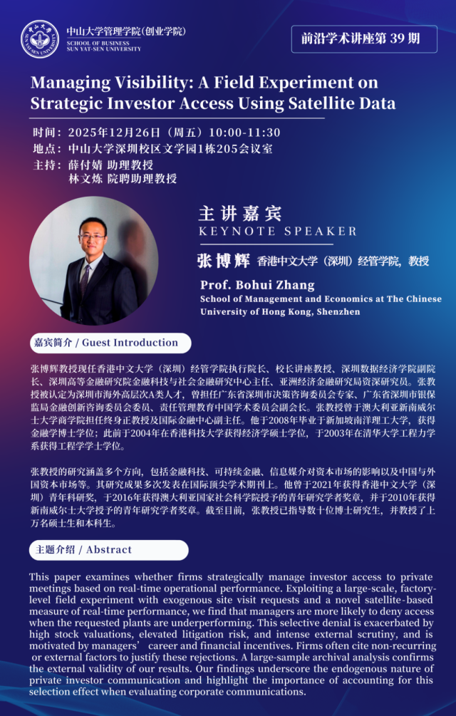 讲座预告 | 管理可见性:一项基于卫星数据的策略性投资者接触的田野实验