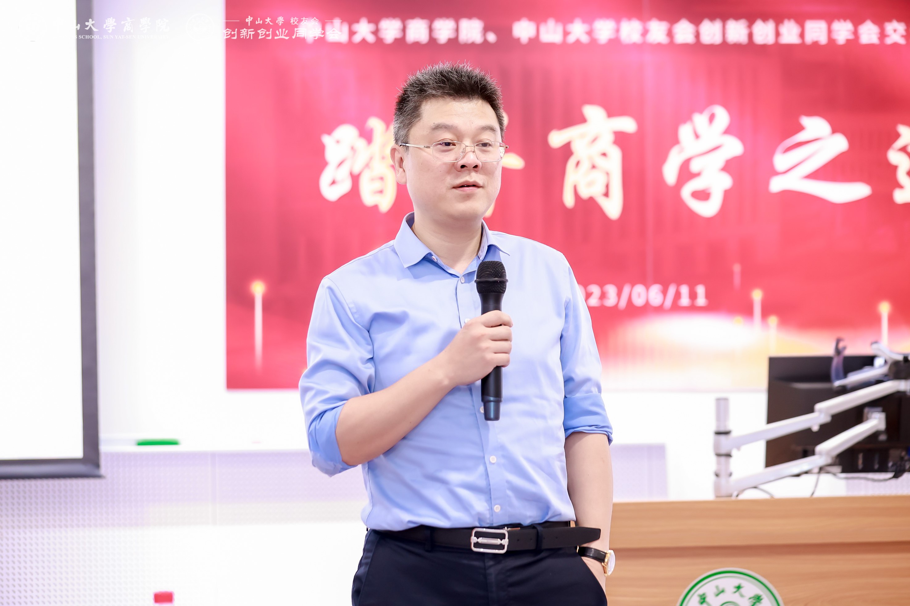 6月11日下午,中山大学商学院、中山大学校友会创新创业同学会“踏寻商学之道”交流活动在中山大学深圳校区东教学楼顺利举行。中山大学商学院院长李广众教授、直属党支部书记龙长春等学院师生代表以及创新创业同学会校友近50人参与本次交流活动。活动还邀请了南方科技大学讲席教授李仲飞教授、中山大学管理学院张书军教授、中山大学深圳校友会副会长裴继伟先生参加此次活动。