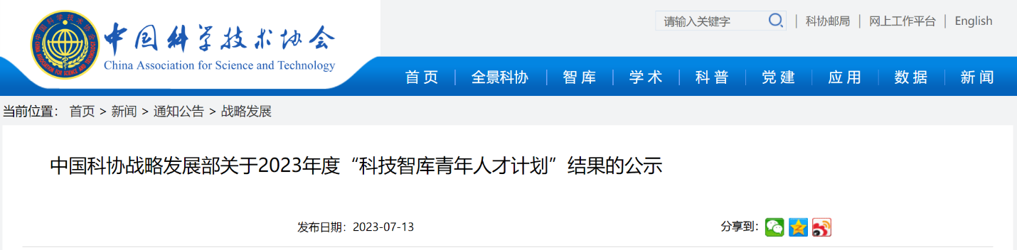 喜报 | 我院余雷助理教授获中国科协“科技智库青年人才计划”立项