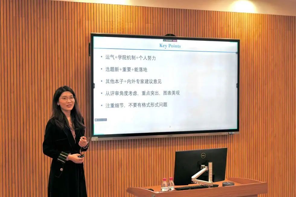 在经验分享环节,薛付婧助理教授、詹钥淞助理教授、刘冰教授、郑晓莹副教授依次分享了申报经验,并同与会者就选题的创新性、立项依据、研究方案等关键问题展开了深入讨论。