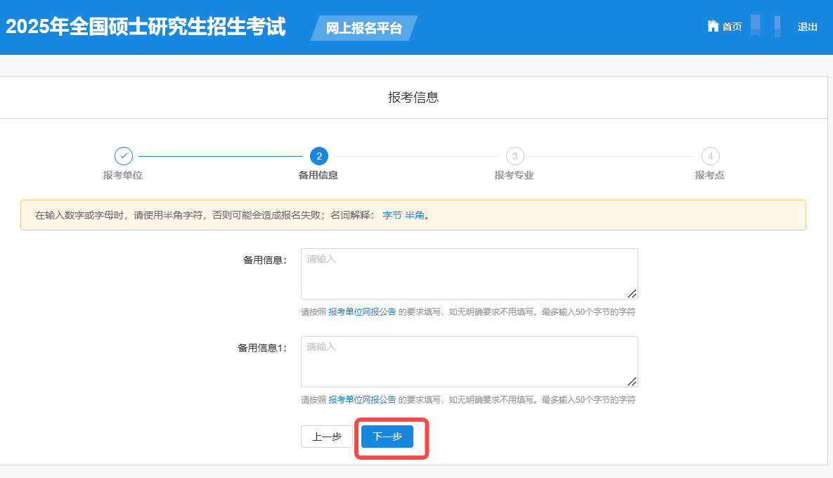 4、备用信息:无明确要求不用填写,点击进入下一步