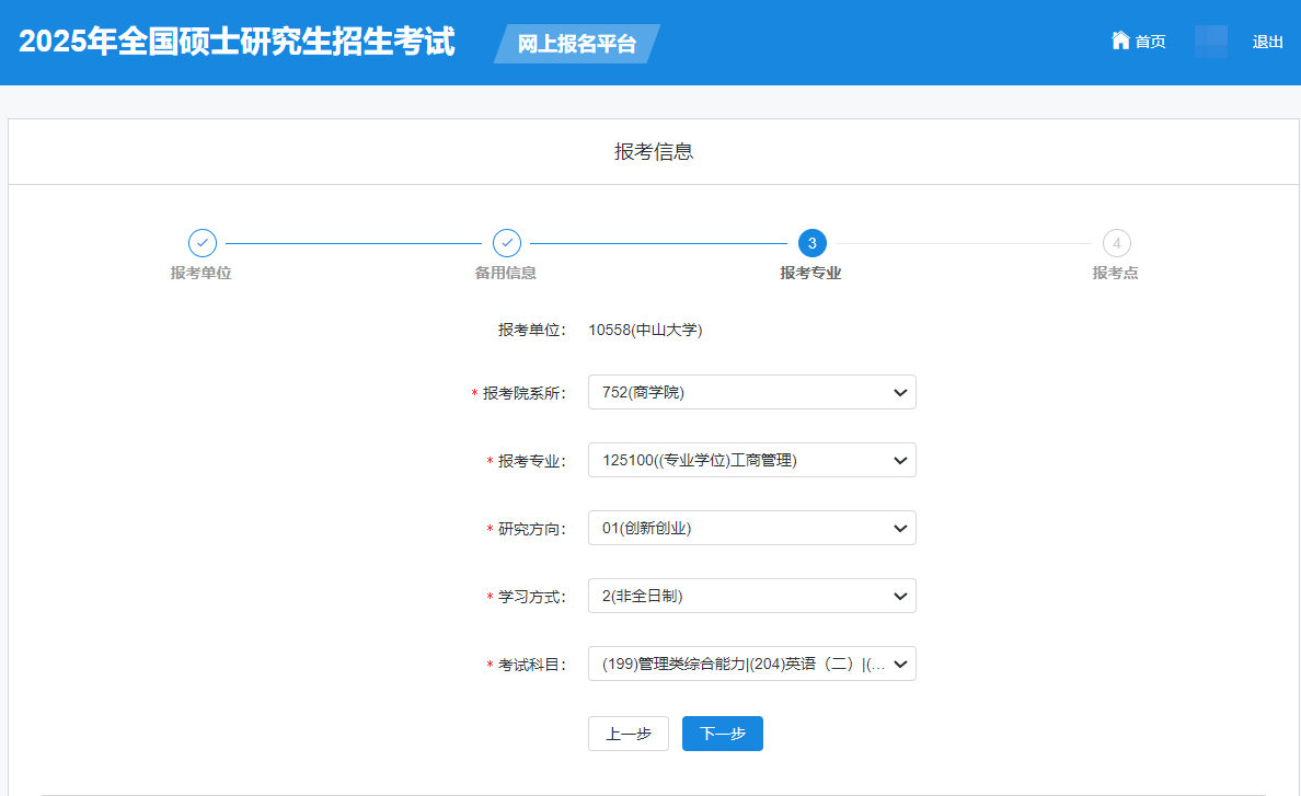 第三步填写报考信息